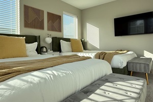 wo queen beds with medium-firm mattresses and a 50-inch TV. ️