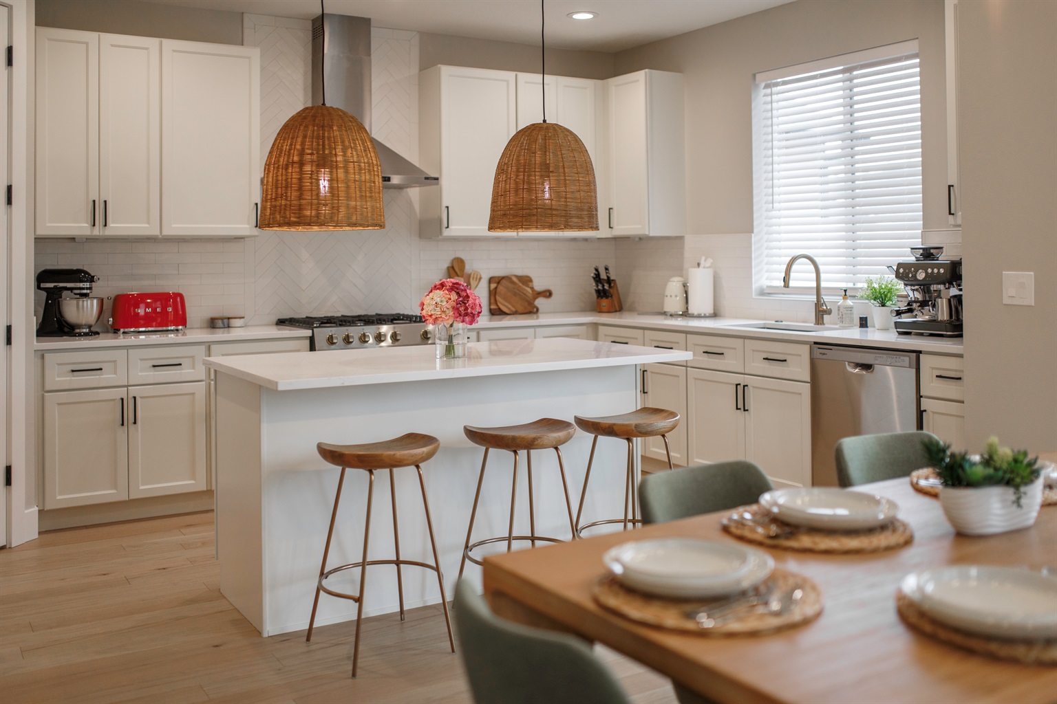 Fully equipped kitchen and a cozy, bright dining room. ️✨